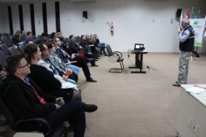 A enchente é uma realidade em nossa região. Precisamos nos preparar e cobrar ações do setor público para amenizar este problema. Nós solicitamos essa palestra para a Defesa Civil para sabermos o que está sendo feito. Este auditório deveria estar cheio. As pessoas sabem reclamar e fazer críticas nas redes sociais, mas poucos se dispõem a participar, por isso vocês estão de parabéns”, comentou o presidente do OS Rio do Sul, Jean Sandro Pedroso, dirigindo-se ao público presente.